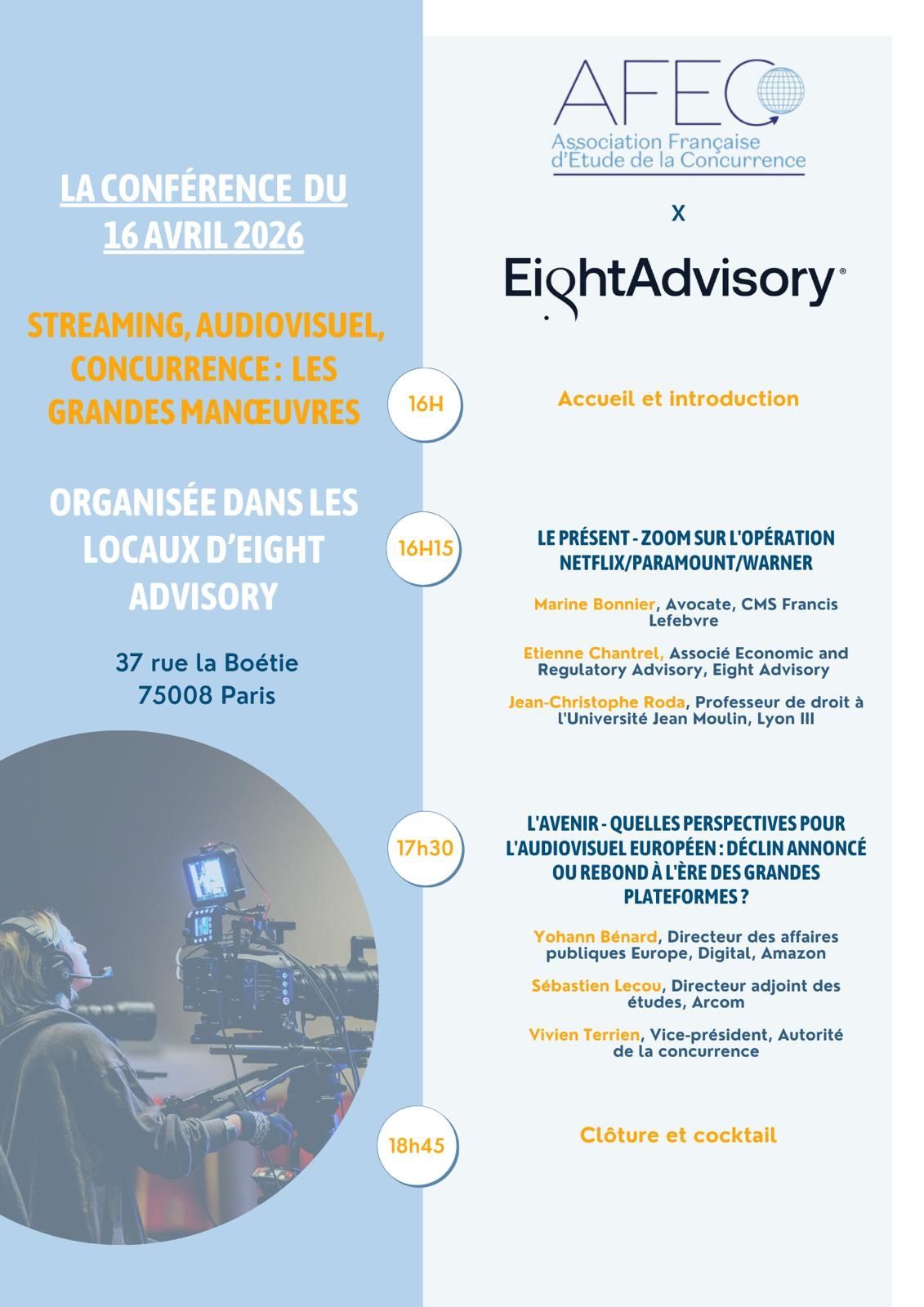 Nous aurons l’honneur d’accueillir d’éminents professionnels du droit de la concurrence et du secteur audiovisuels – Marine Bonnier, Étienne Chantrel , Jean-Christophe Roda, Yohann Benard, Sébastien Lecou, Vivien Terrien .